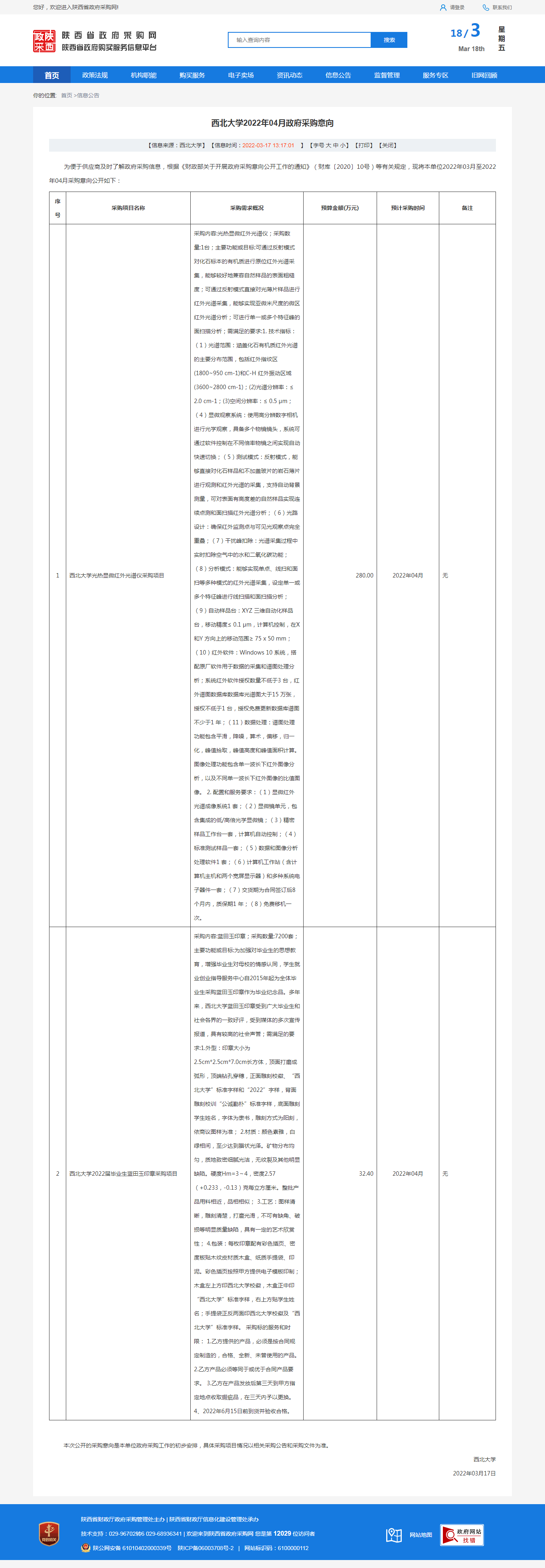 欧冠官方网站2022年04月政府采购意向 作者: 编辑:薛利娟 时间:2022-03-18 原公告链接:http://www.ccgp-shaanxi.gov.cn/freecms/site/shaanxi/ggxx/info/2022/8a69c4007f95d4d3017f964880ca106d.html?noticeType=59¬iceId=91e3ee6e-a5b1-11ec-a943-08c0eb20c486