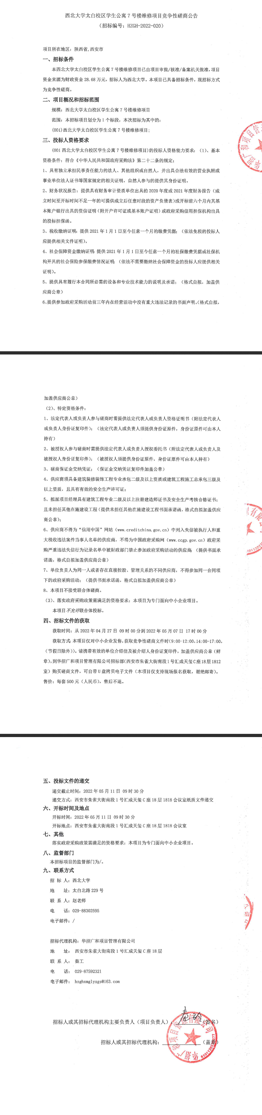 欧冠官方网站太白校区学生公寓7号楼维修项目竞争性磋商公告