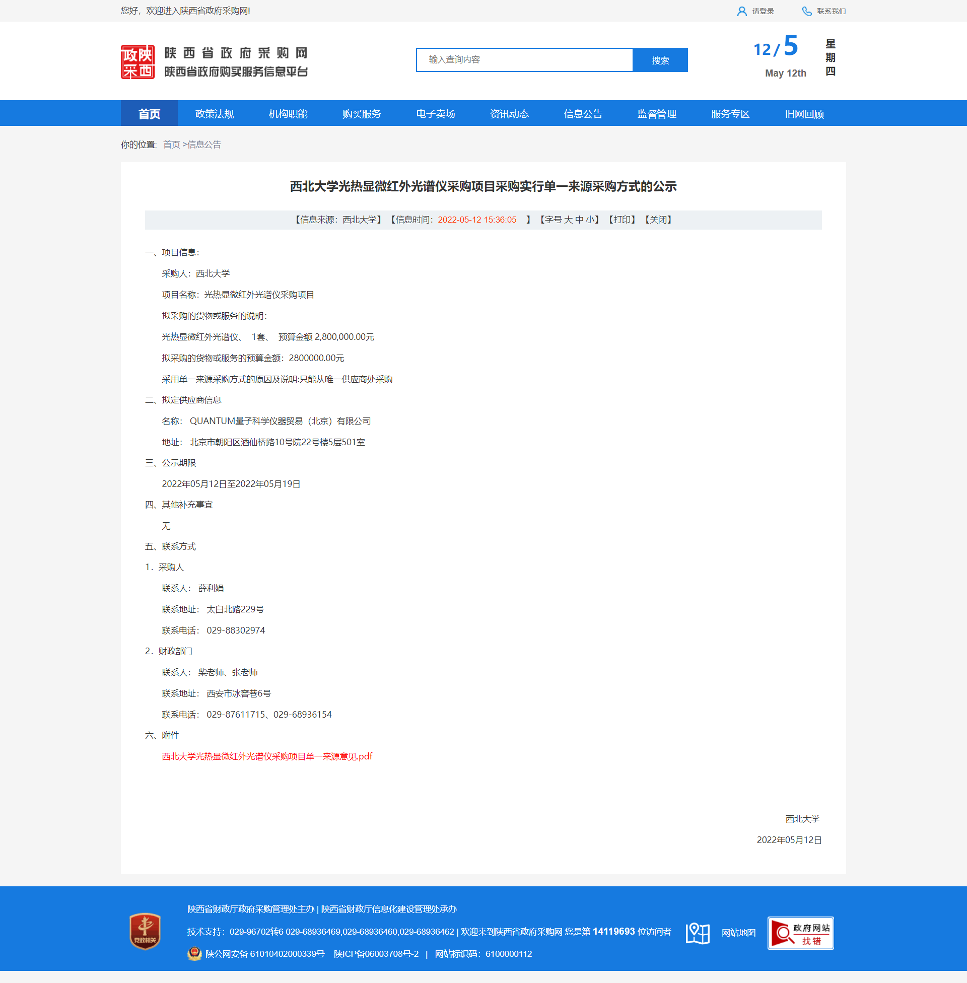欧冠官方网站光热显微红外光谱仪采购项目采购实行单一来源采购方式的公示 作者: 编辑:薛利娟 时间:2022-05-12 原公告链接:http://www.ccgp-shaanxi.gov.cn/freecms/site/shaanxi/ggxx/info/2022/8a69c0c980b0a61b0180b723a9b03d17.html?noticeType=001051¬iceId=6429ac2f-d1c6-11ec-9a8e-08c0eb20c666