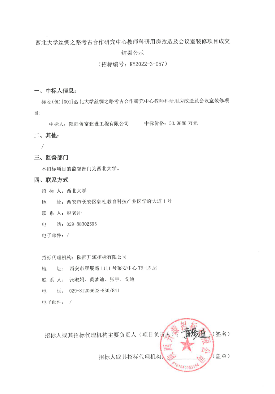 欧冠官方网站丝绸之路考古合作研究中心教师科研用房改造及会议室装修项目成交结果公示