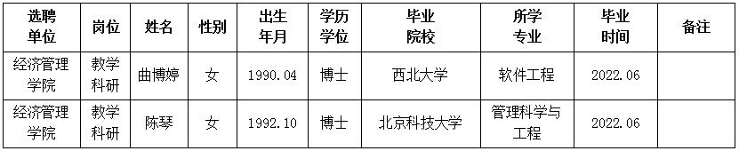 经用人单位推荐,人力资源部审查,学校教学督导及院系相关专家考核,欧冠拟确定下列人员来校工作。本着公平、公正、公开的原则,现将本次拟选聘人员基本情况公示如下: