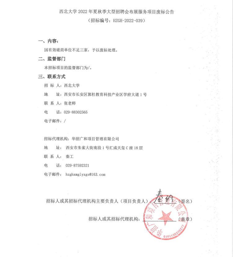 关于欧冠官方网站2022年夏秋季大型招聘会布展服务项目废标公告