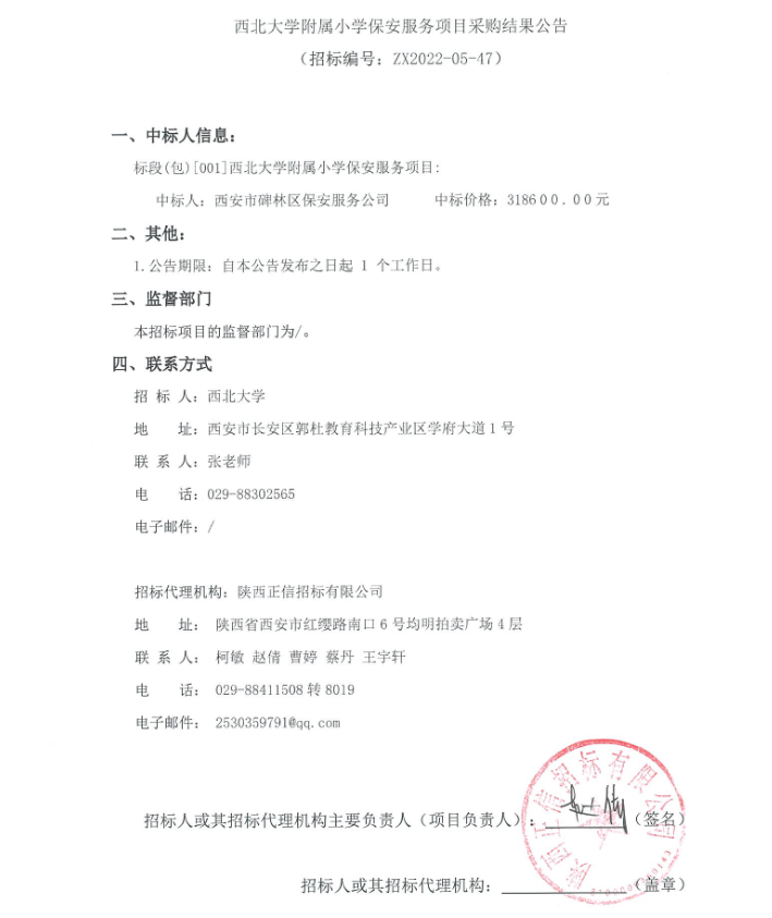 关于欧冠官方网站附属小学保安服务项目采购结果公告