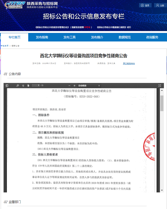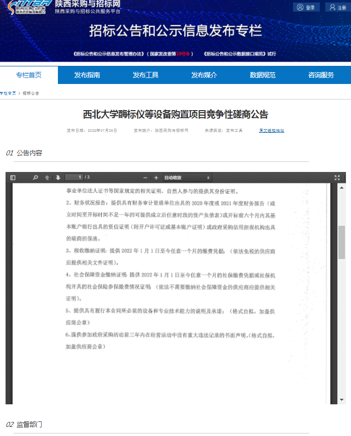 欧冠官方网站酶标仪等设备购置项目竞争性磋商公告 作者: 编辑:采购与招标办公室 时间:2022-07-26 原公告链接:http://bulletin.sntba.com/biddingBulletin/2022-07-26/452921.html