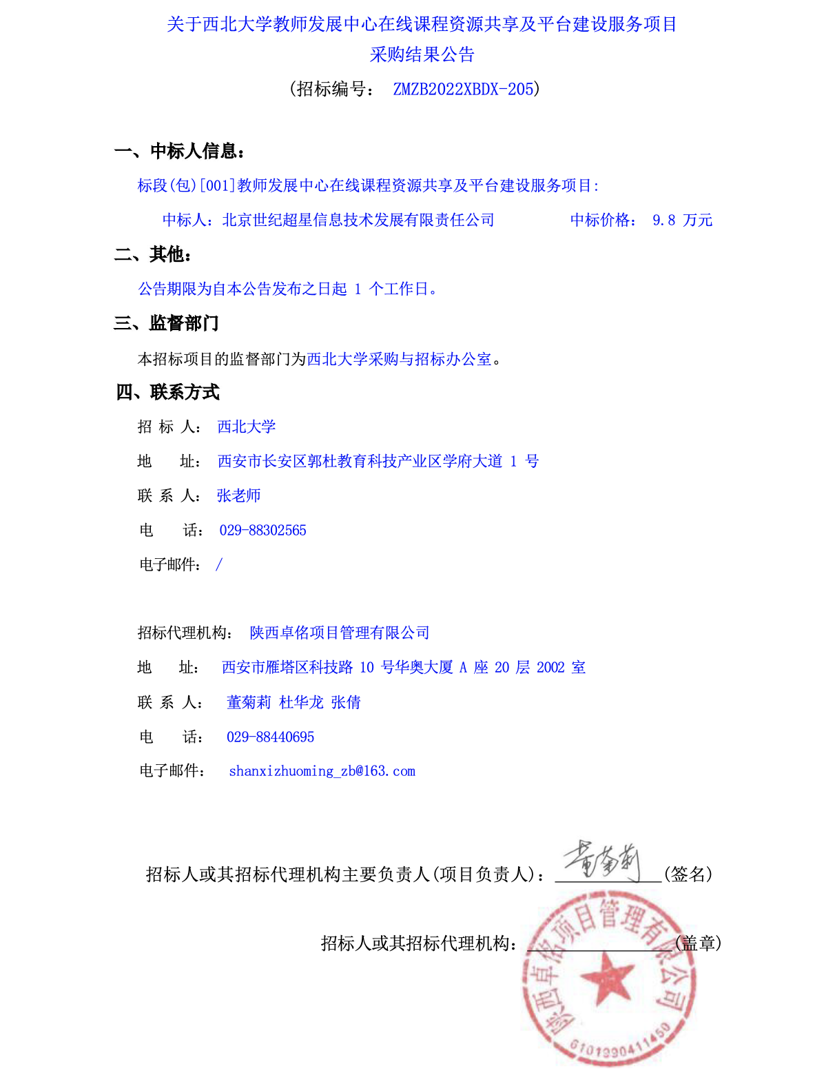关于欧冠官方网站教师发展中心在线课程资源共享及平台建设服务项目采购结果公告