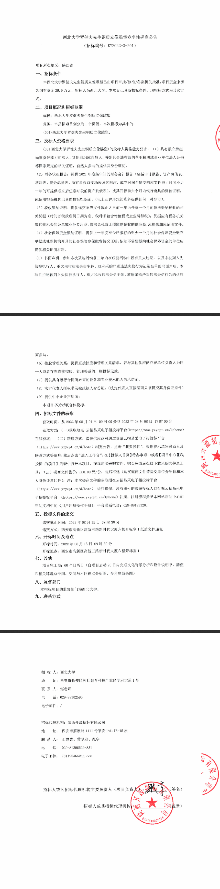 欧冠官方网站罗健夫先生铜质立像雕塑竞争性磋商公告
