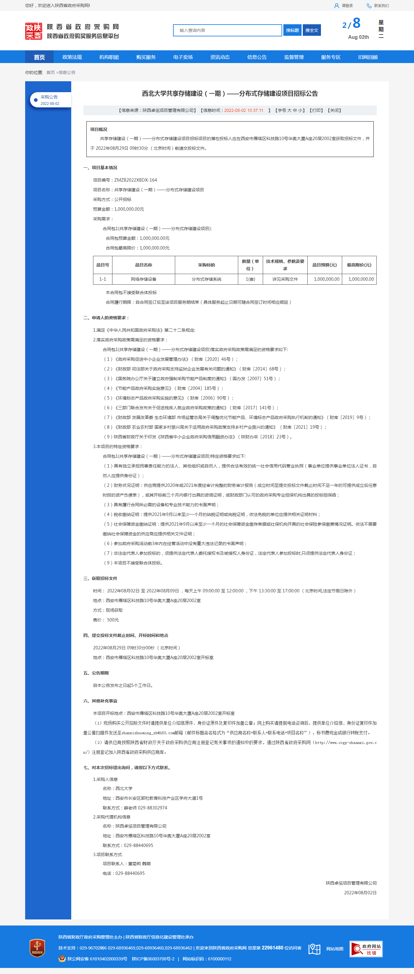 欧冠官方网站共享存储建设(一期)——分布式存储建设项目招标公告 作者: 编辑:采购与招标办公室 时间:2022-08-02 原公告链接:http://www.ccgp-shaanxi.gov.cn/freecms/site/shaanxi/ggxx/info/2022/8a69c8308238f00301825cf936ec1904.html?noticeType=001011¬iceId=565bf0b7-1236-11ed-9a8e-08c0eb20c666