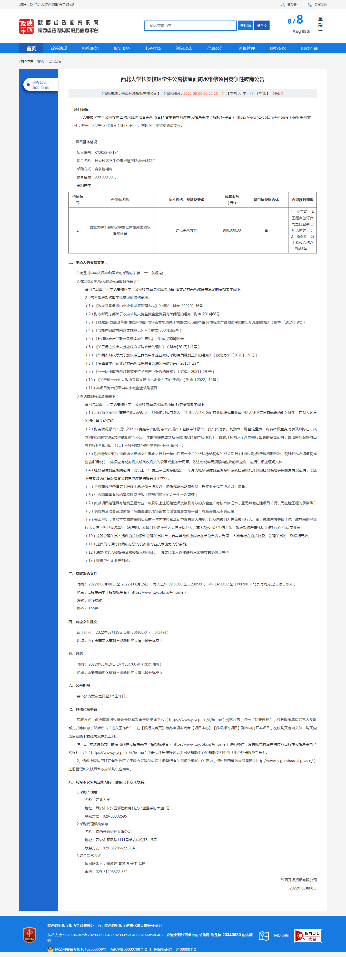 欧冠官方网站长安校区学生公寓楼屋面防水维修项目竞争性磋商公告