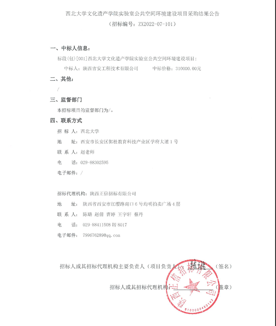 欧冠官方网站文化遗产学院实验室公共空间环境建设项目采购结果公告