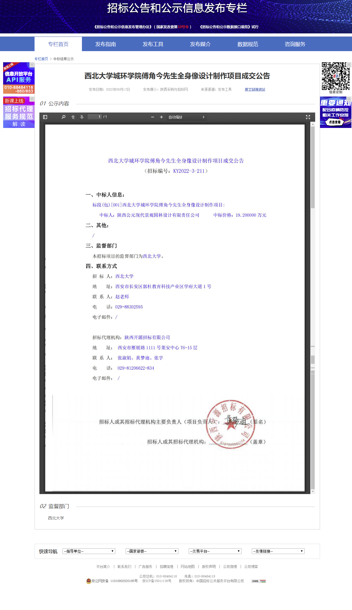 欧冠官方网站城环学院傅角今先生全身像设计制作项目成交公告