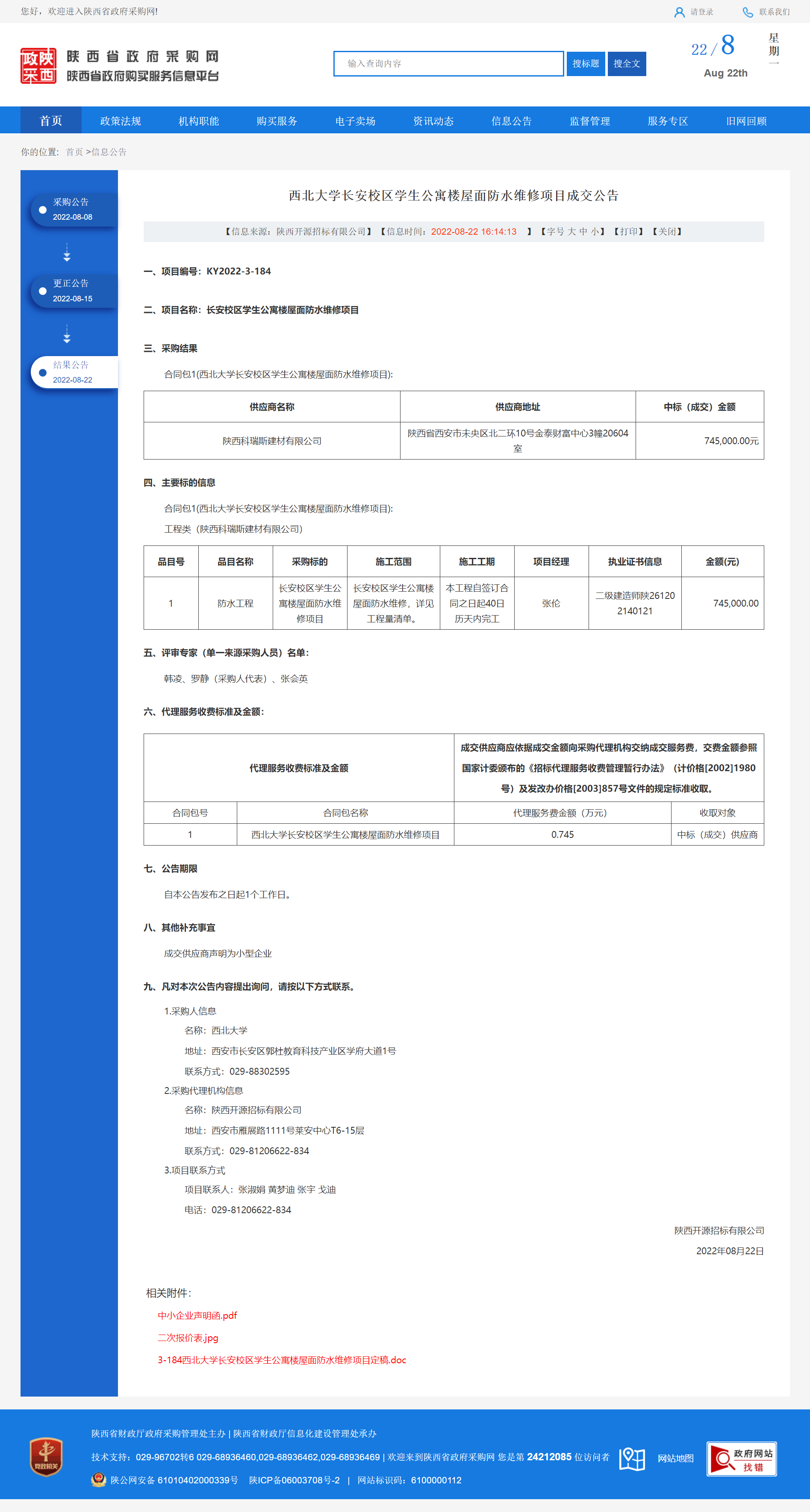 欧冠官方网站长安校区学生公寓楼屋面防水维修项目成交公告