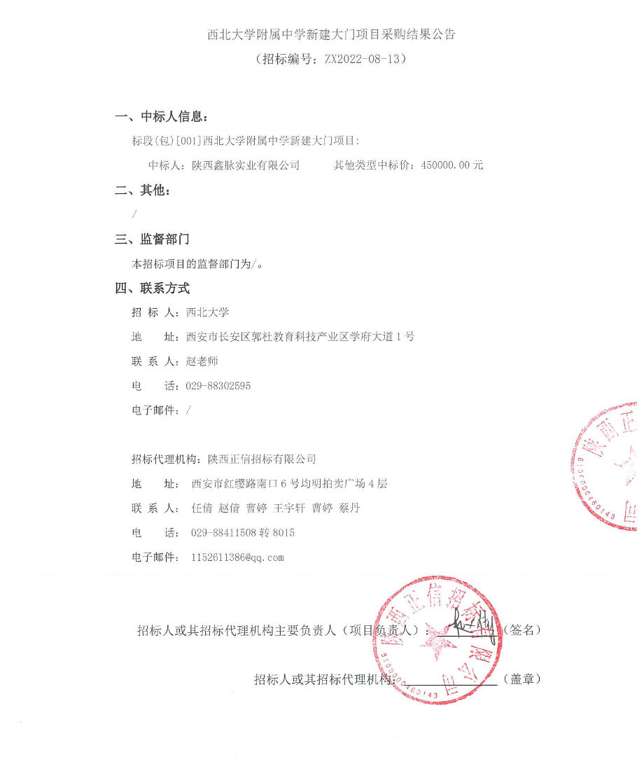 欧冠官方网站附属中学新建大门项目采购结果公告