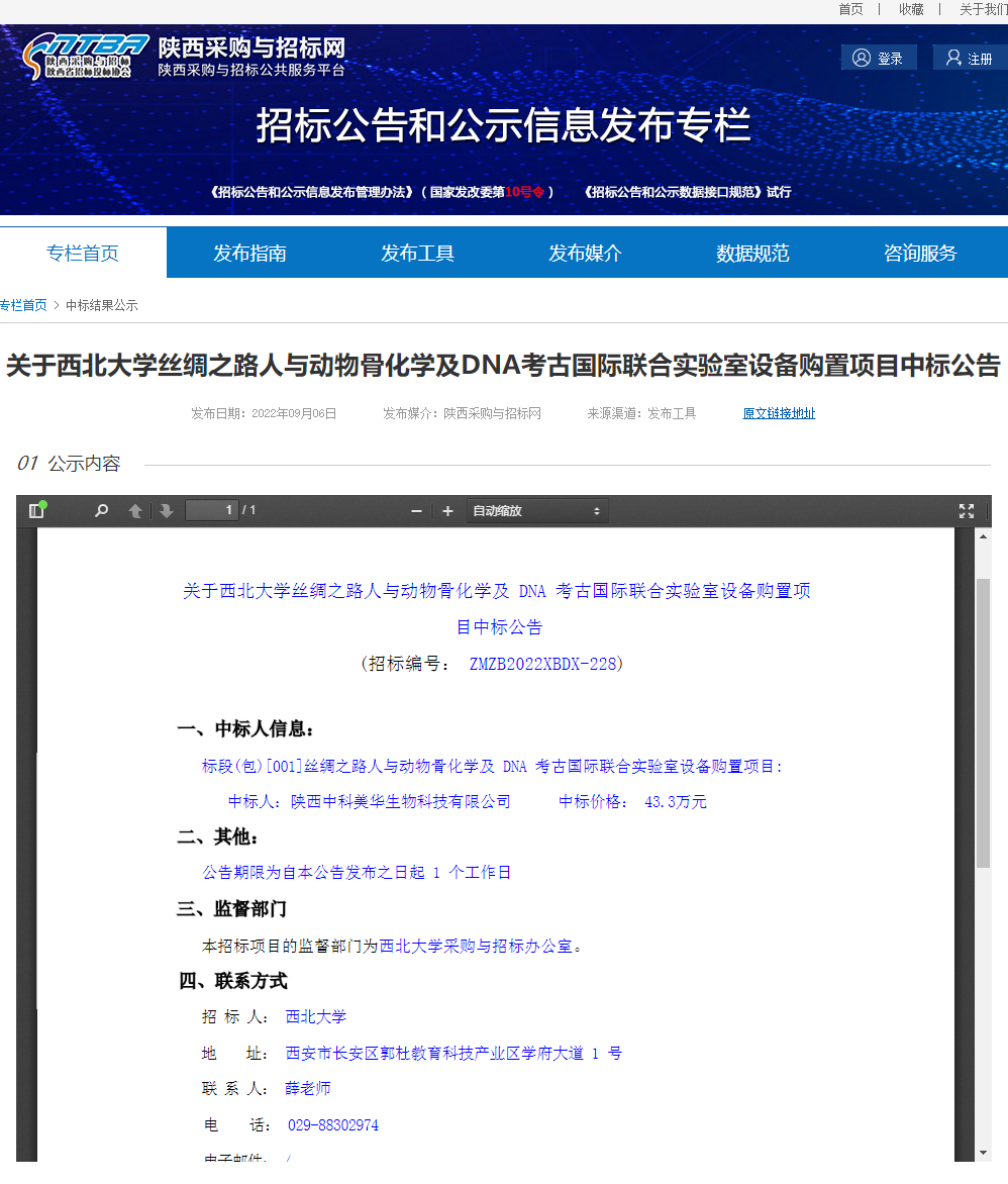 关于欧冠官方网站丝绸之路人与动物骨化学及DNA考古国际联合实验室设备购置项目中标公告 作者: 编辑:采购与招标办公室 时间:2022-09-06 原公告链接:http://bulletin.sntba.com/resultBulletin/2022-09-06/470905.html