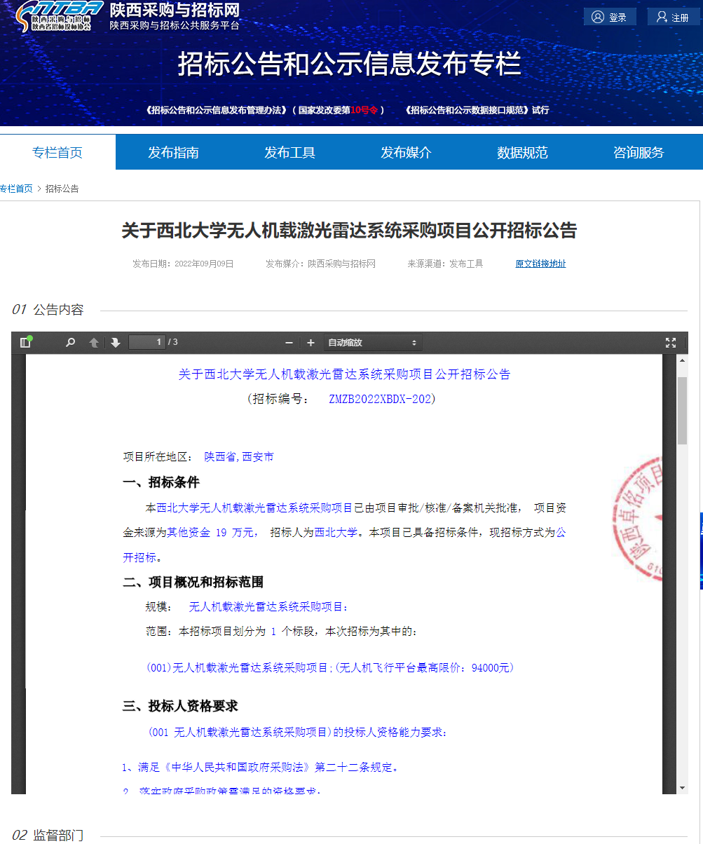 关于欧冠官方网站无人机载激光雷达系统采购项目公开招标公告 作者: 编辑:关于欧冠官方网站无人机载激光雷达系统采购项目公开招标公告 时间:2022-09-09 原公告链接:http://bulletin.sntba.com/biddingBulletin/2022-09-09/472755.html