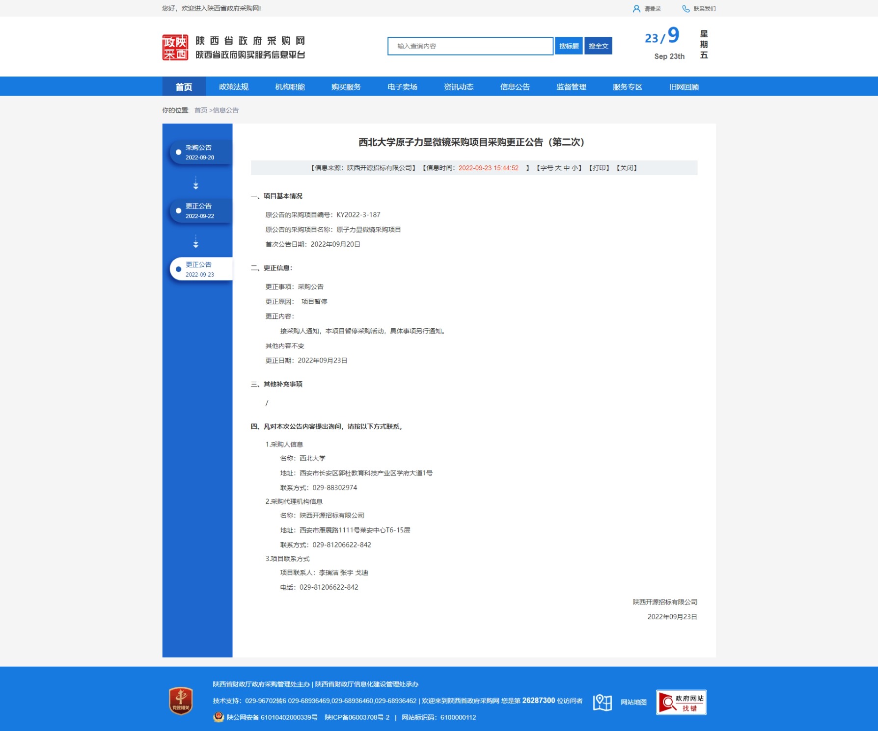欧冠官方网站原子力显微镜采购项目采购更正公告(第二次) 作者: 编辑:采购与招标办公室 时间:2022-09-23 原公告链接:http://www.ccgp-shaanxi.gov.cn/freecms/site/shaanxi/ggxx/info/2022/8a69c78482a320a201836942a02842b0.html?noticeType=001031¬iceId=22ff8d4b-3b14-11ed-9a8e-08c0eb20c666