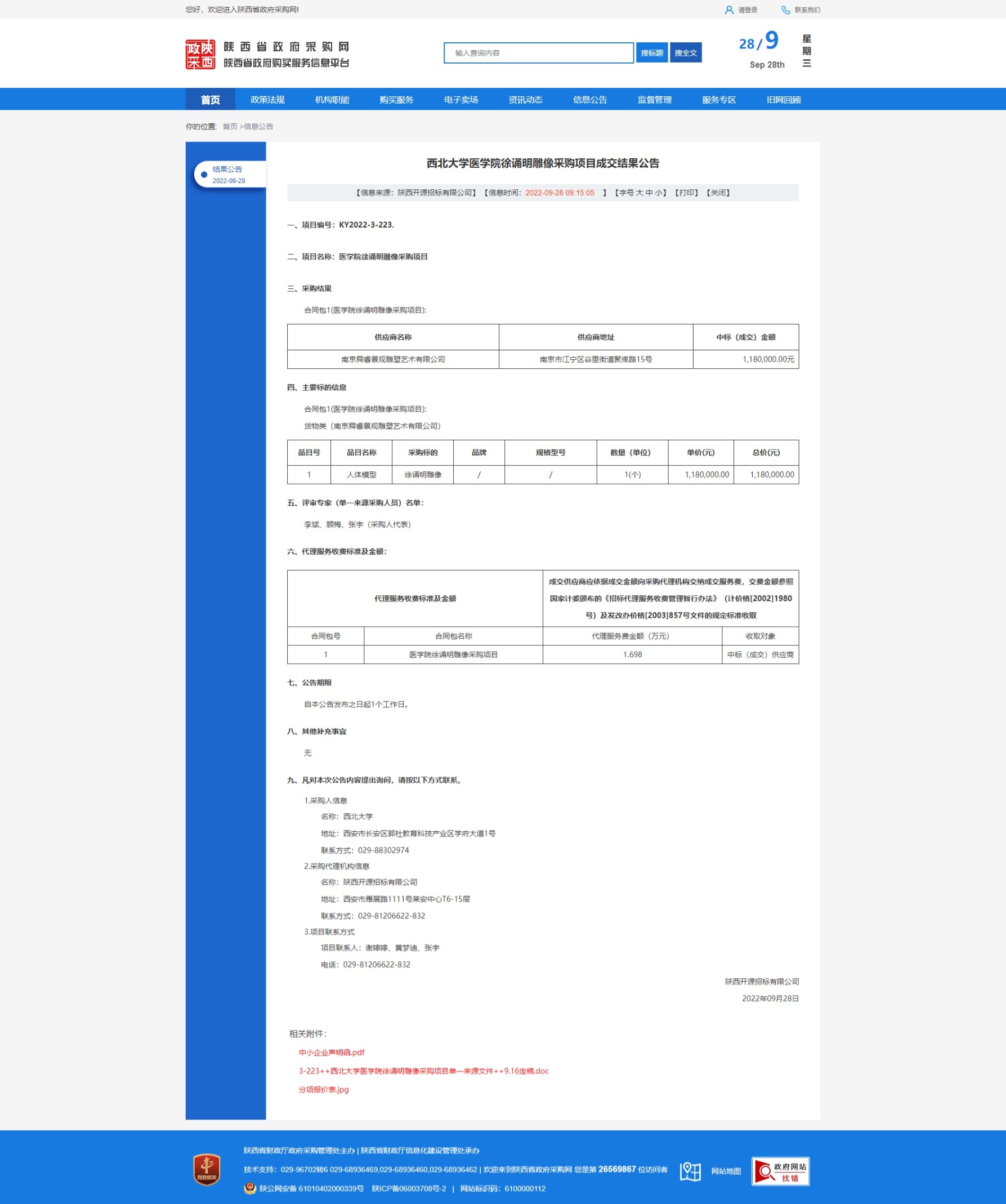 欧冠官方网站医学院徐诵明雕像采购项目成交结果公告 作者: 编辑:采购与招标办公室 时间:2022-09-28 原公告链接:http://www.ccgp-shaanxi.gov.cn/freecms/site/shaanxi/ggxx/info/2022/8a69c59682a320a401837f62d0c80746.html?noticeType=001025¬iceId=85d816df-3ecb-11ed-9a8e-08c0eb20c666