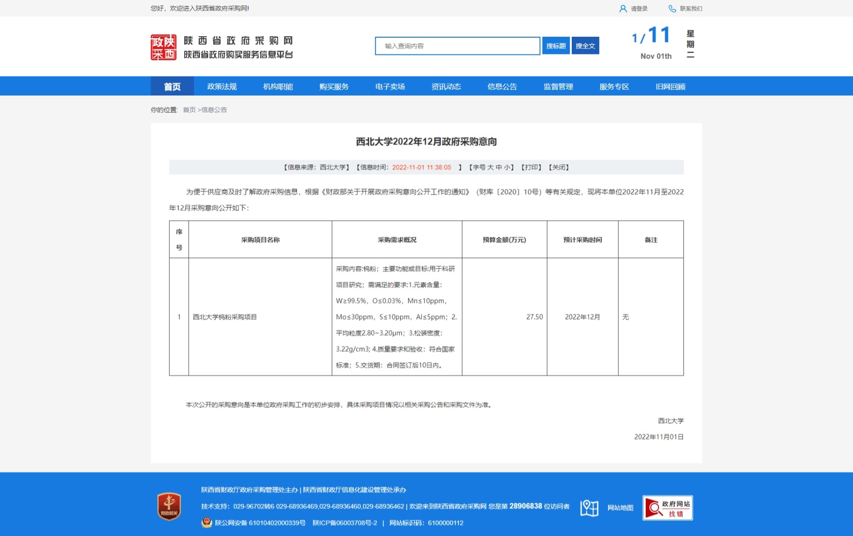 欧冠官方网站2022年12月政府采购意向 作者: 编辑:采购与招标办公室 时间:2022-11-01 原公告链接:http://www.ccgp-shaanxi.gov.cn/freecms/site/shaanxi/ggxx/info/2022/8a69c851842917c901843142ef485753.html?noticeType=59¬iceId=3378fddc-5997-11ed-9a8e-08c0eb20c666