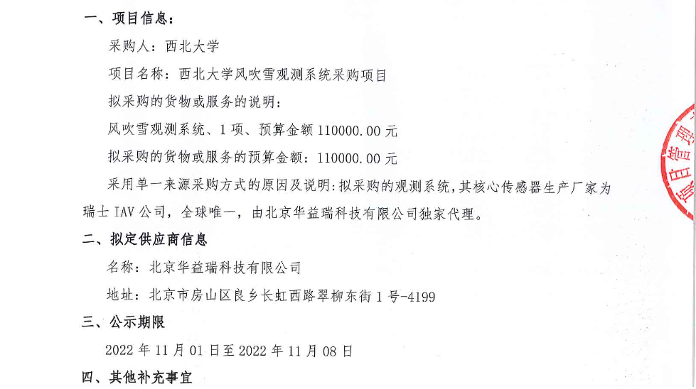 欧冠官方网站风吹雪观测系统采购项目采购实行单一来源采购方式的公示 作者: 编辑:采购与招标办公室 时间:2022-11-01 原公告链接:http://www.sntba.com/website/gg_show.aspx?id=223073