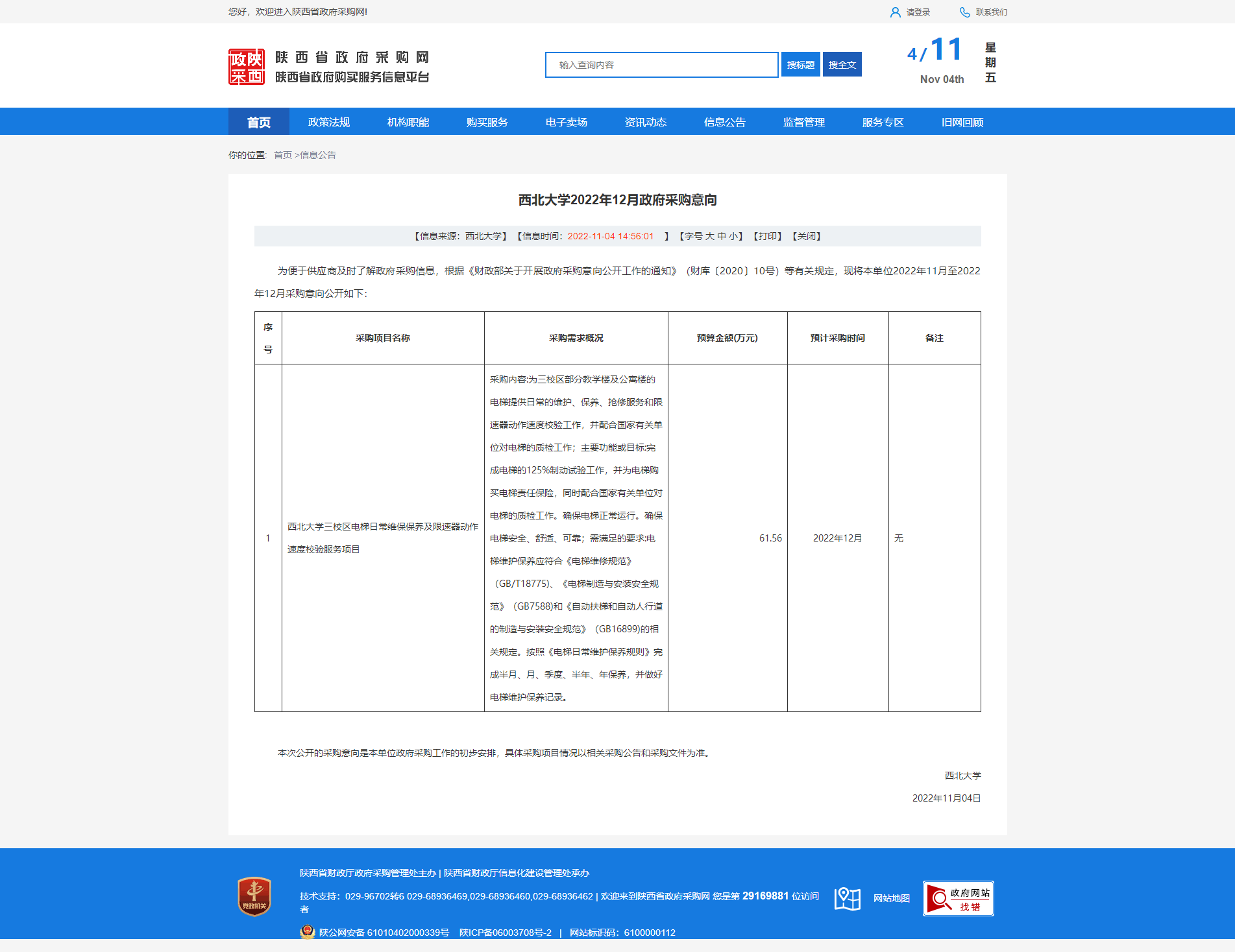 欧冠官方网站2022年12月政府采购意向