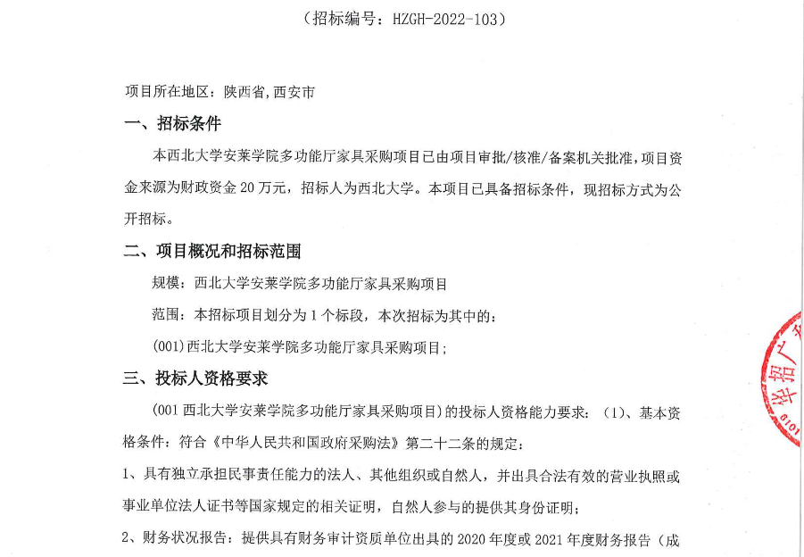 欧冠官方网站安莱学院多功能厅家具采购项目招标公告 作者: 编辑:采购与招标办公室 时间:2022-11-16 原公告链接:http://bulletin.sntba.com/biddingBulletin/2022-11-16/499529.html