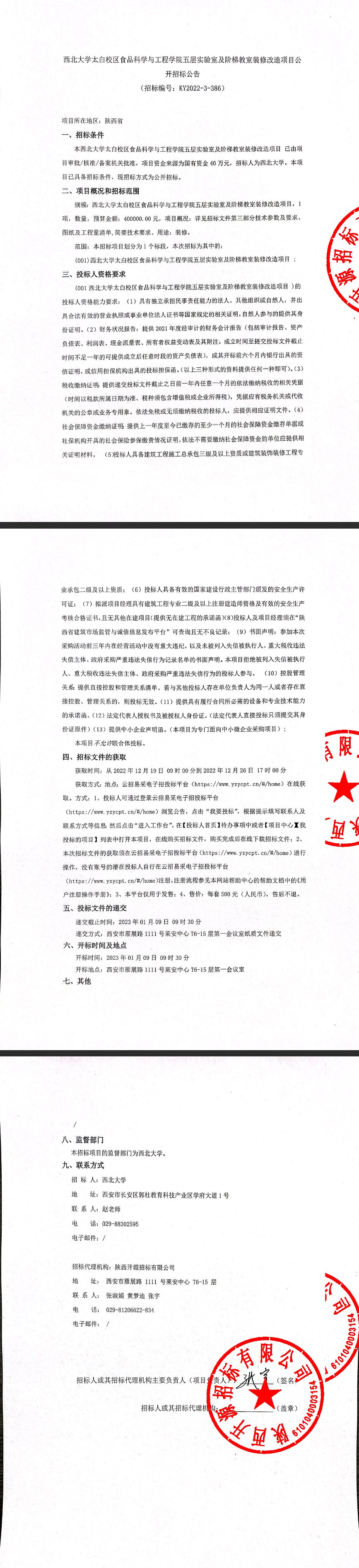欧冠官方网站太白校区食品科学与工程学院五层实验室及阶梯教室装修改造项目公开招标公告