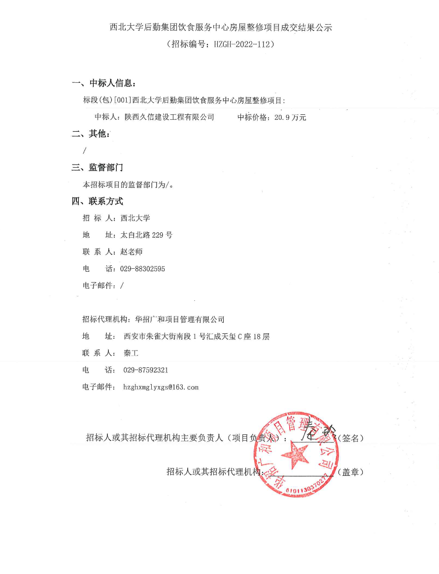 欧冠官方网站后勤集团饮食服务中心房屋整修项目成交结果公示