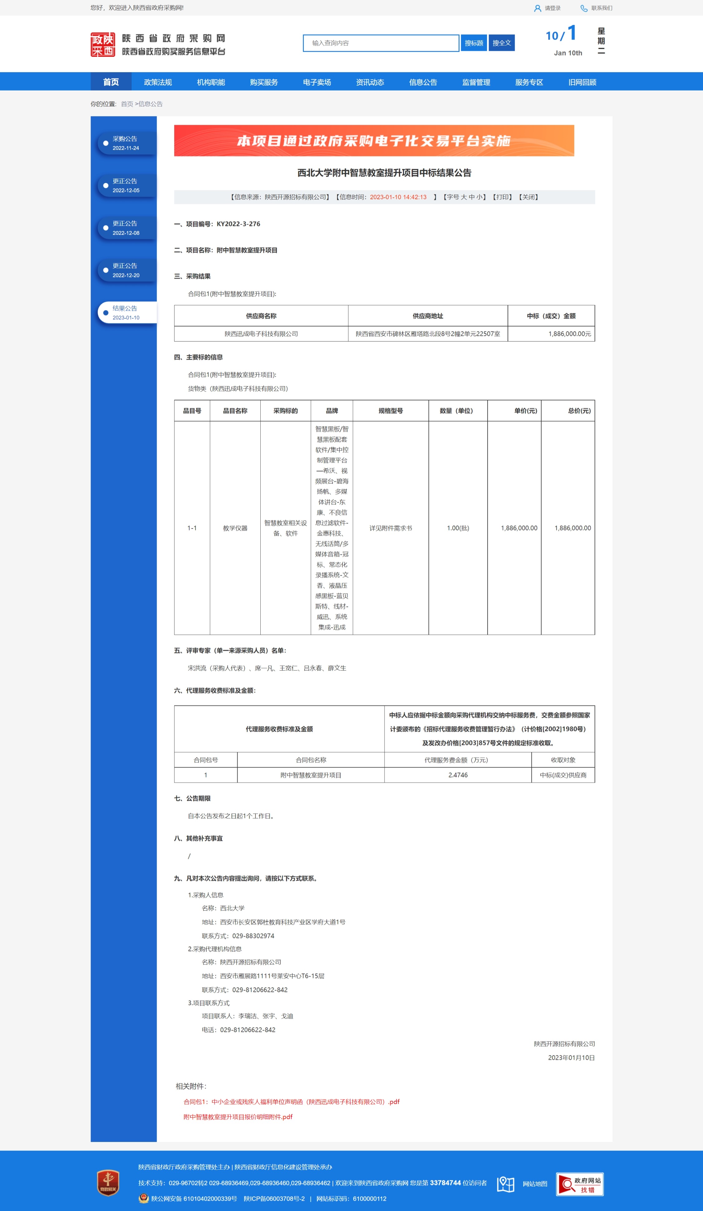 欧冠官方网站附中智慧教室提升项目中标结果公告 作者: 编辑:采购与招标办公室 时间:2023-01-10 原公告链接:http://www.ccgp-shaanxi.gov.cn/freecms/site/shaanxi/ggxx/info/2023/8a69c05f8581795e018595600a8f300b.html?noticeType=001021¬iceId=abf5e723-90b2-11ed-9a8e-08c0eb20c666