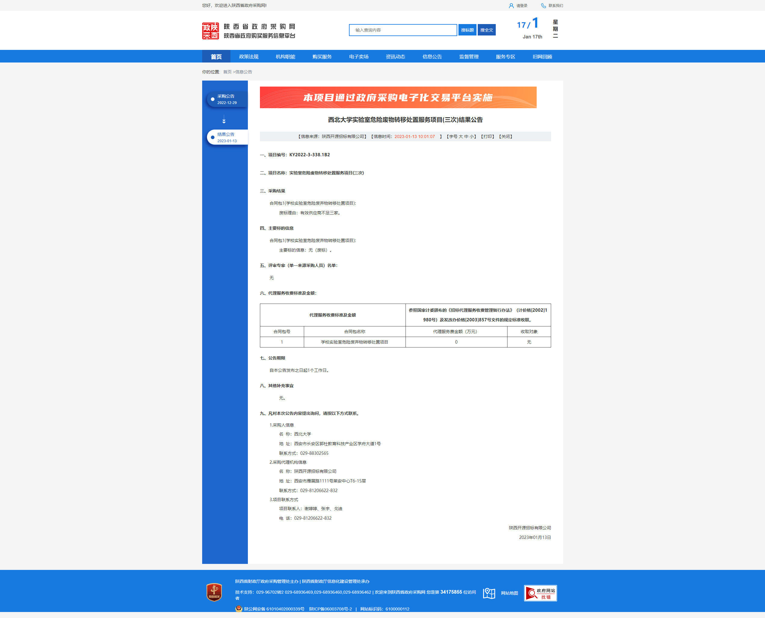 欧冠官方网站实验室危险废物转移处置服务项目(三次)结果公告