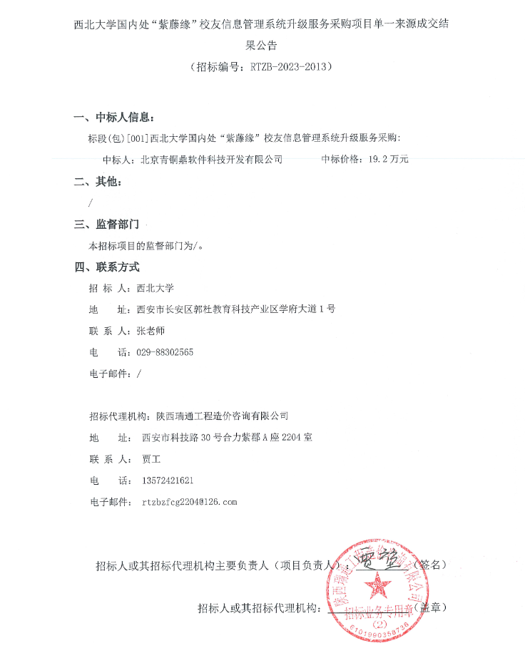 欧冠官方网站国内处“紫藤缘”校友信息管理系统升级服务采购项目单一来源成交结果公告