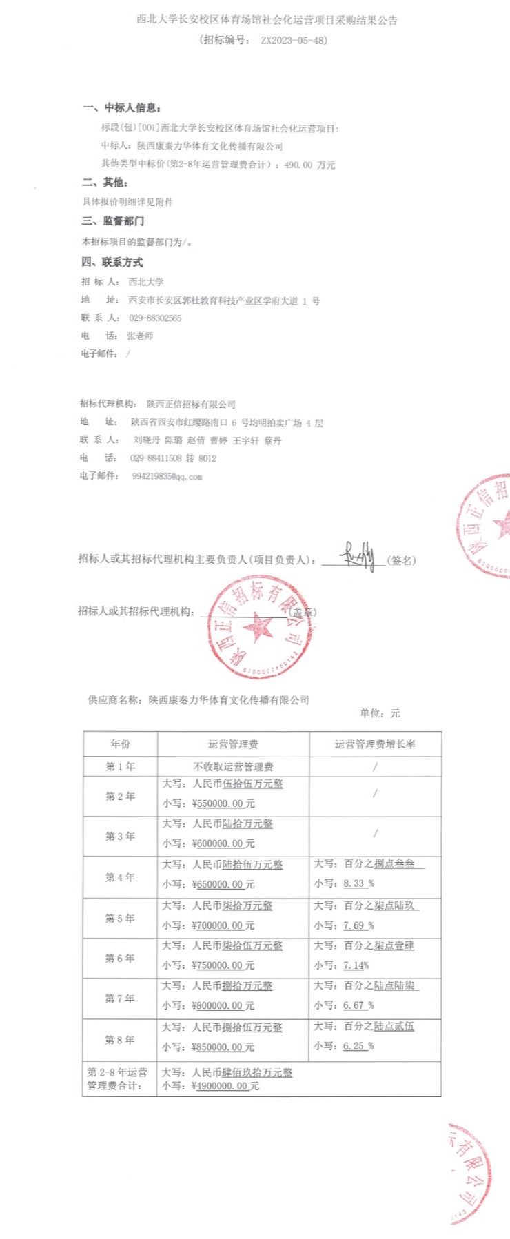 欧冠官方网站长安校区体育场馆社会化运营项目采购结果公告