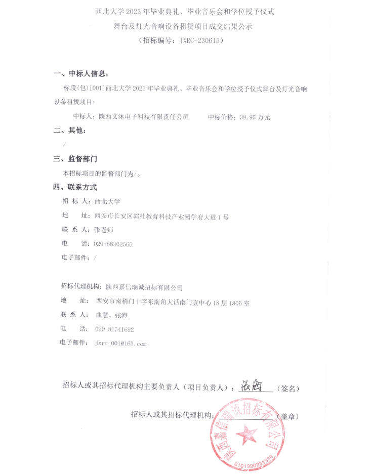 欧冠官方网站2023年毕业典礼、毕业音乐会和学位授予仪式舞台及灯光音响设备租赁项目成交结果公示
