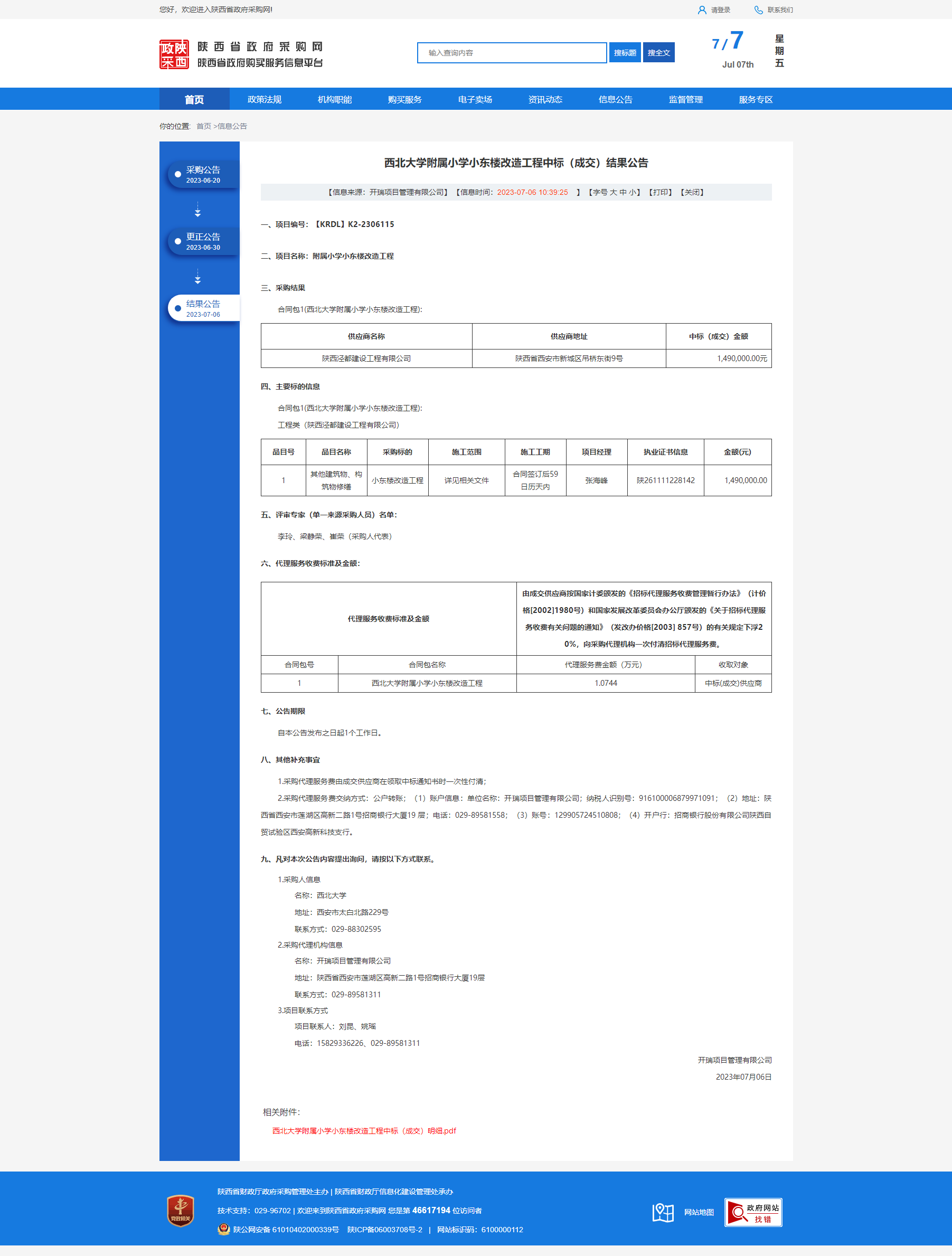 欧冠官方网站附属小学小东楼改造工程中标(成交)结果公告
