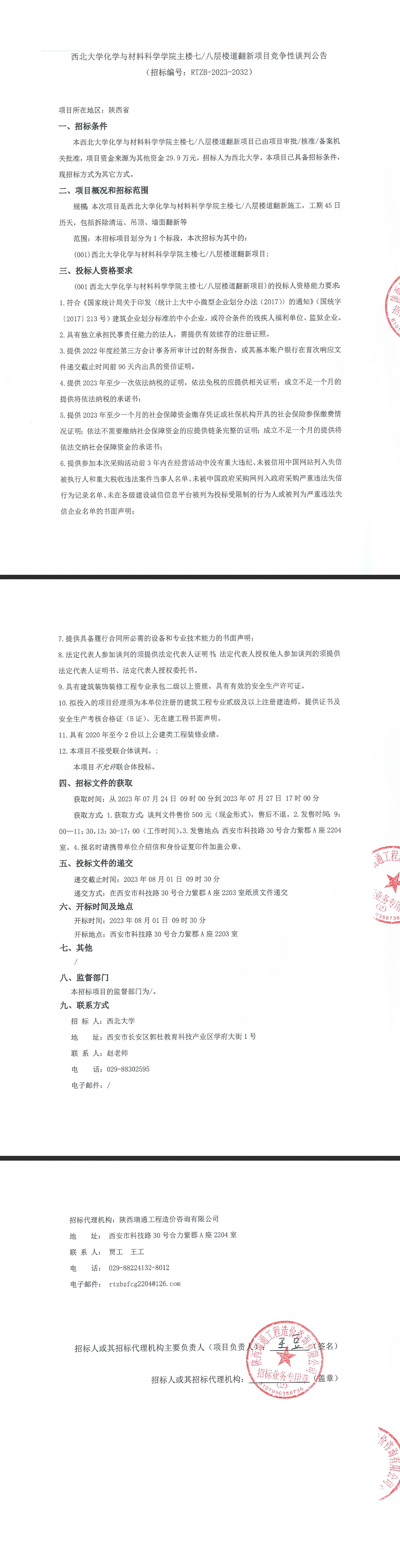 欧冠官方网站化学与材料科学学院主楼七/八层楼道翻新项目竞争性谈判公告