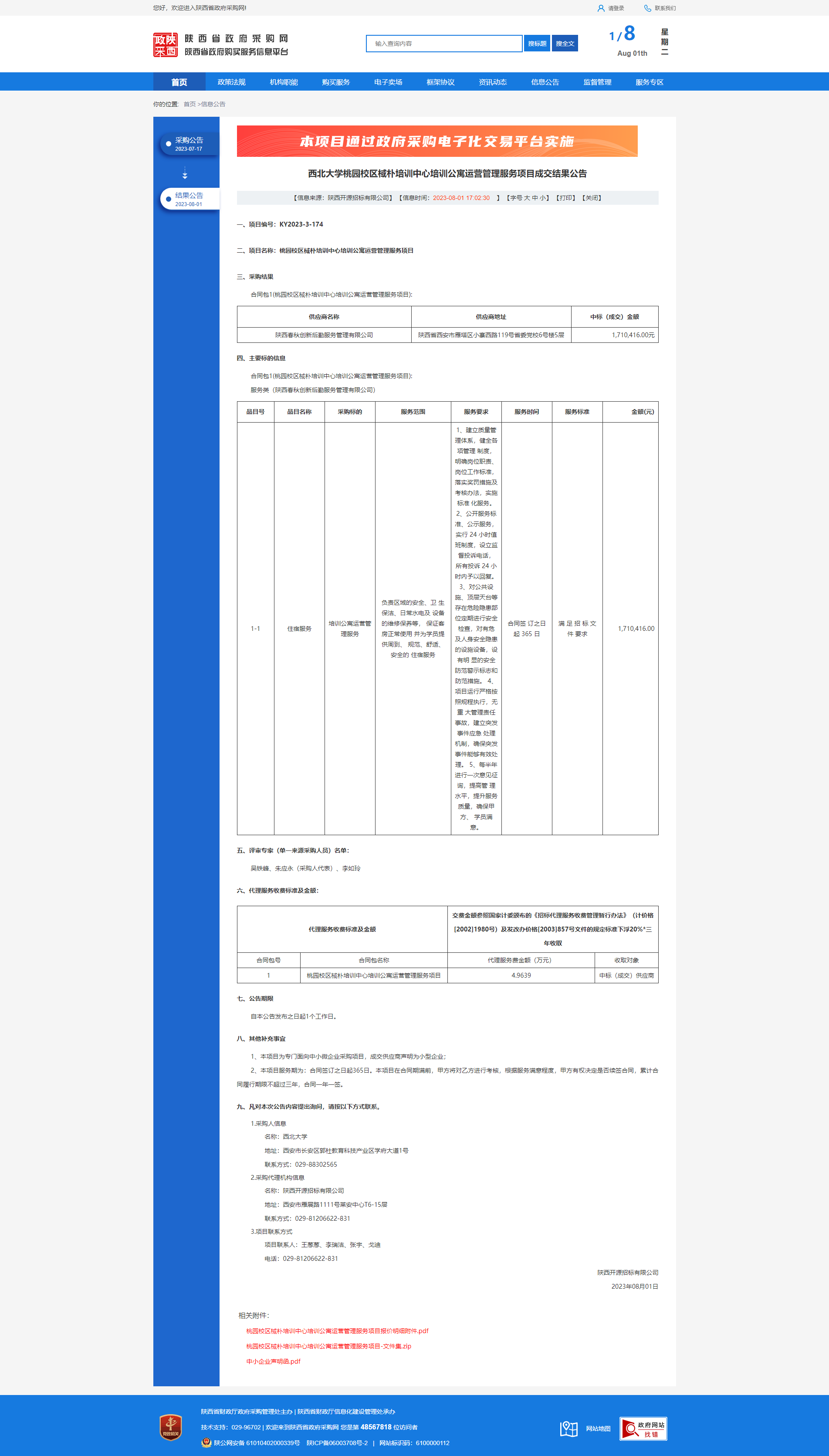 欧冠官方网站桃园校区棫朴培训中心培训公寓运营管理服务项目成交结果公告