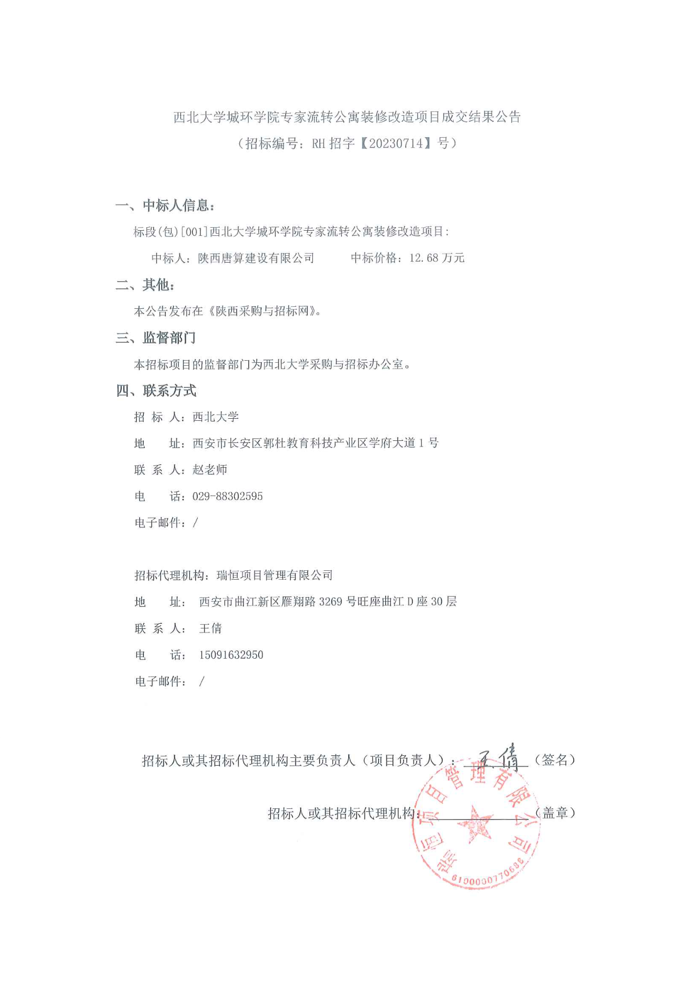 欧冠官方网站城环学院专家流转公寓装修改造项目成交结果公告
