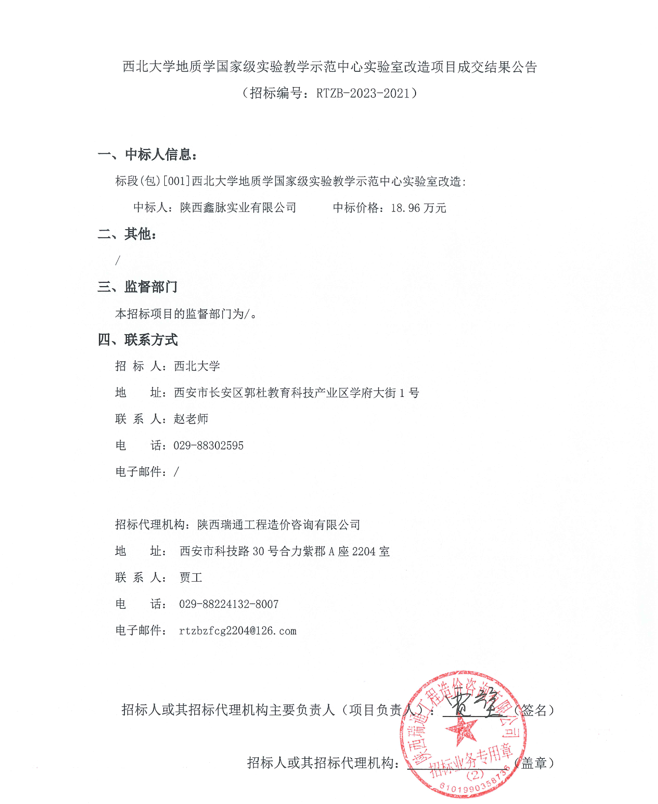 欧冠官方网站地质学国家级实验教学示范中心实验室改造项目成交结果公告