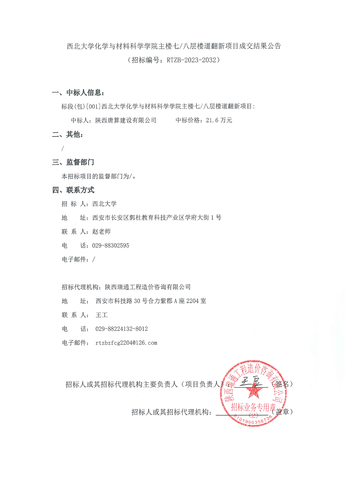 欧冠官方网站化学与材料科学学院主楼七/八层楼道翻新项目成交结果公告