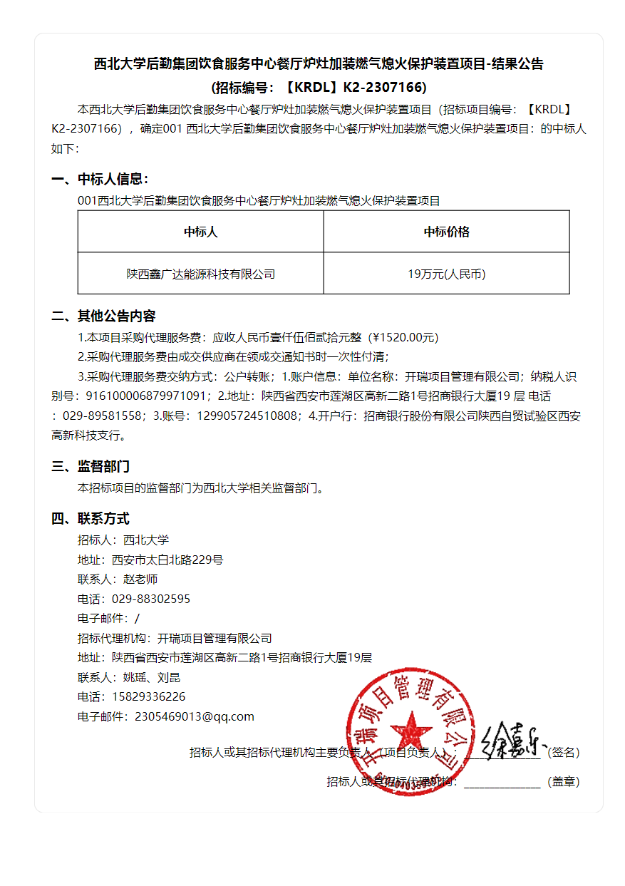 欧冠官方网站后勤集团饮食服务中心餐厅炉灶加装燃气熄火保护装置项目-结果公告