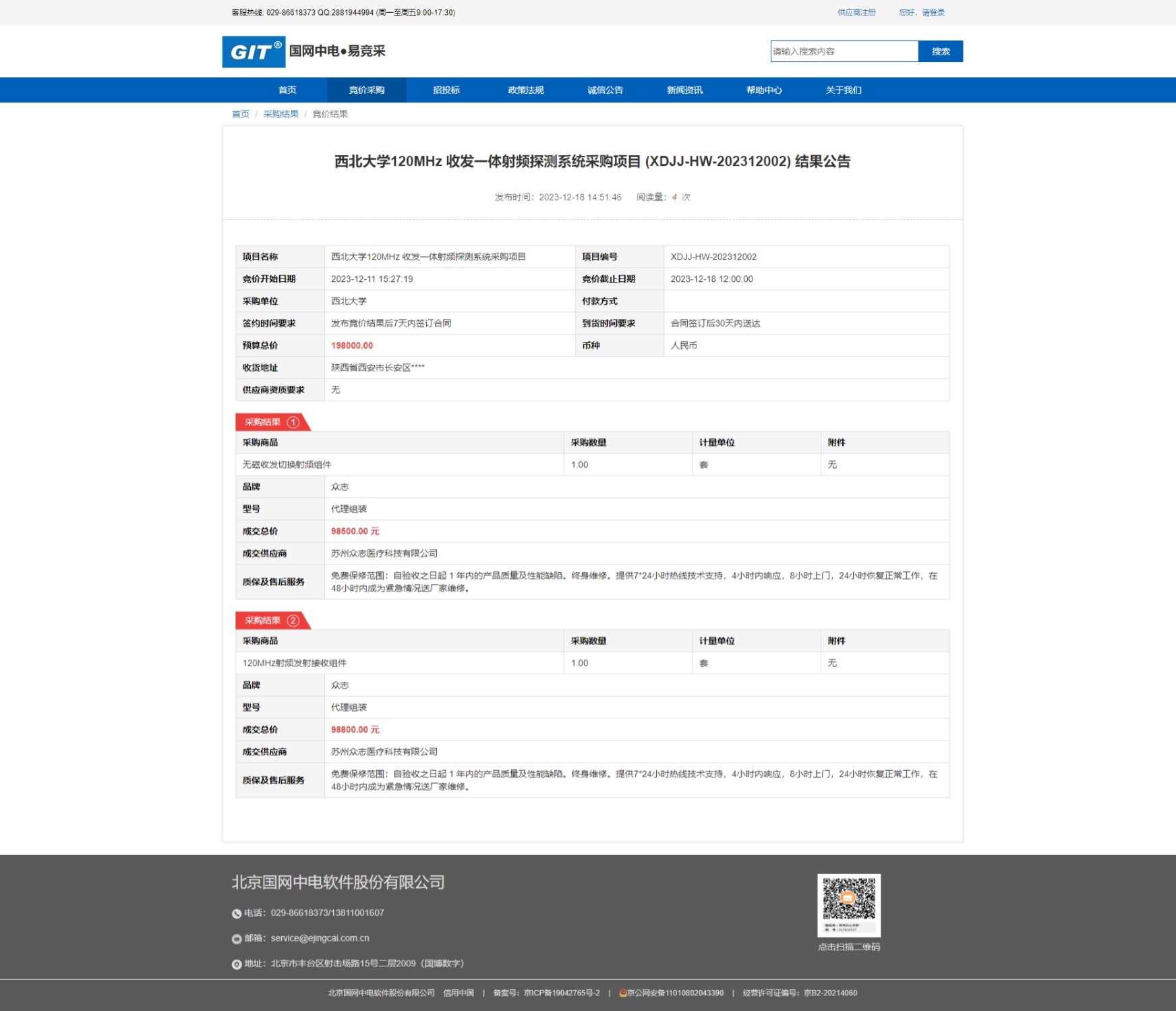 欧冠官方网站120MHz 收发一体射频探测系统采购项目 (XDJJ-HW-202312002) 结果公告 作者: 编辑:采购与招标办公室 时间:2023-12-18 原公告链接:https://www.ejingcai.com.cn/site/bidding/detail/7902