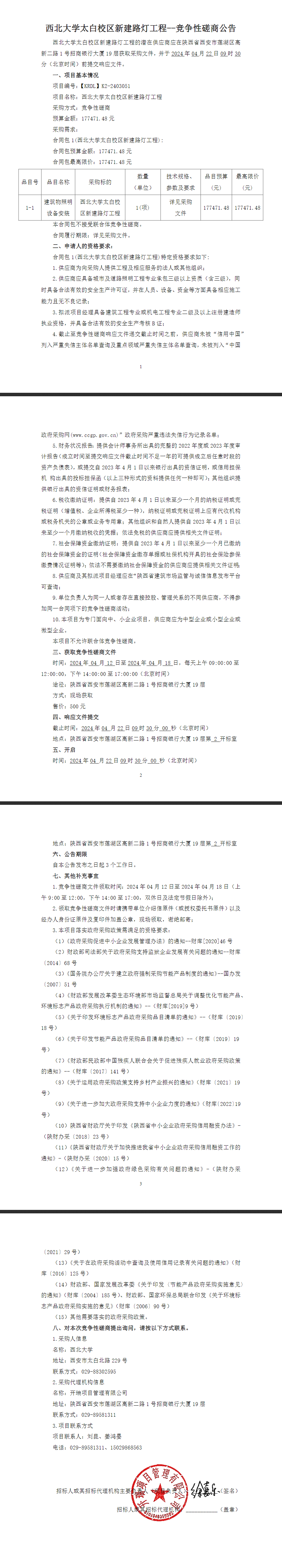欧冠官方网站太白校区新建路灯工程竞争性磋商公告