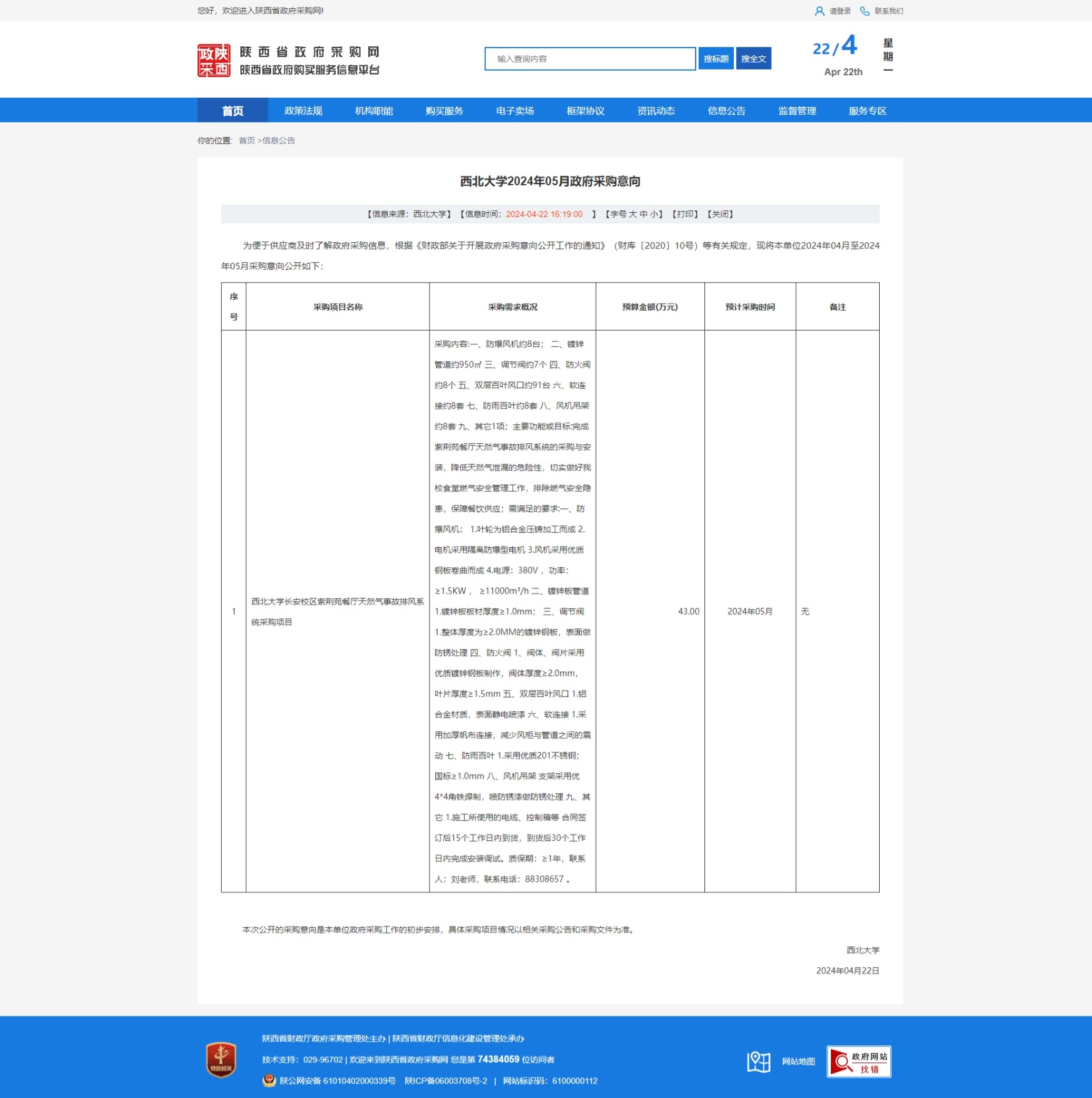 欧冠官方网站2024年05月政府采购意向 作者: 编辑:采购与招标办公室 时间:2024-04-22 原公告链接:https://www.ccgp-shaanxi.gov.cn/freecms/site/shaanxi/ggxx/info/2024/8a69c2f18edfb8e9018f034a758507c8.html?noticeType=59¬iceId=6c449ff0-0083-11ef-b8b6-08c0eb20c666