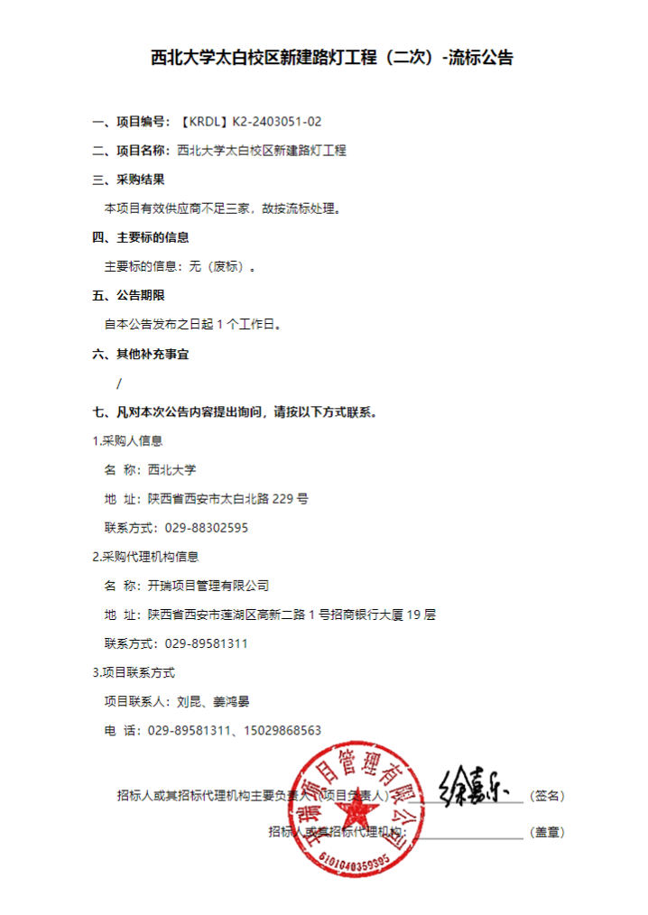 欧冠官方网站太白校区新建路灯工程(二次)-流标公告