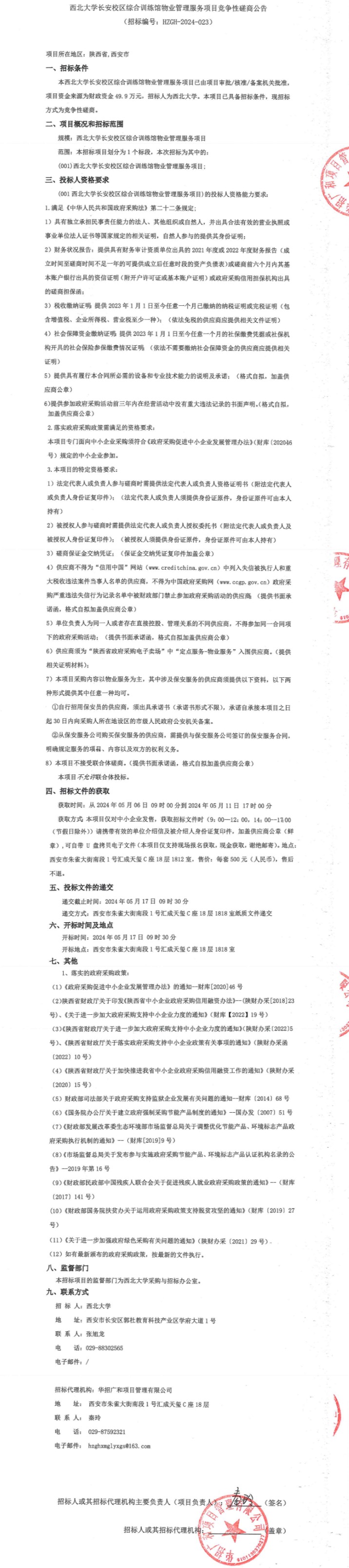 欧冠官方网站长安校区综合训练馆物业管理服务项目竞争性磋商公告