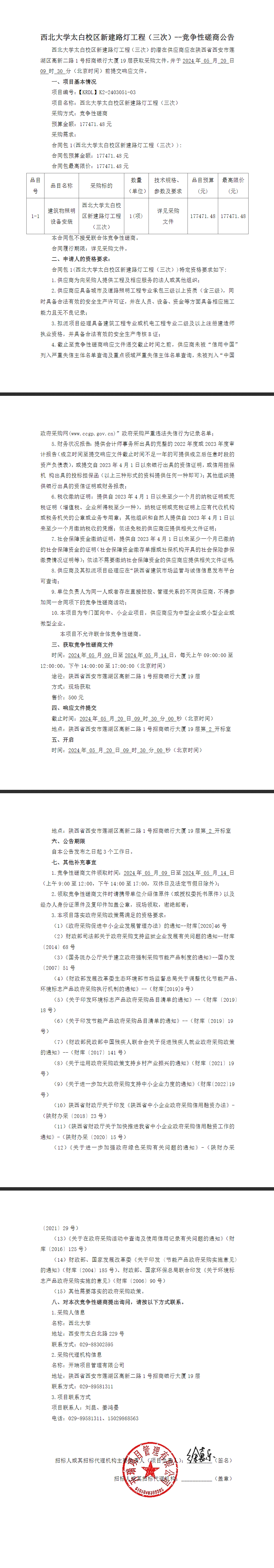 欧冠官方网站太白校区新建路灯工程(三次)竞争性磋商公告