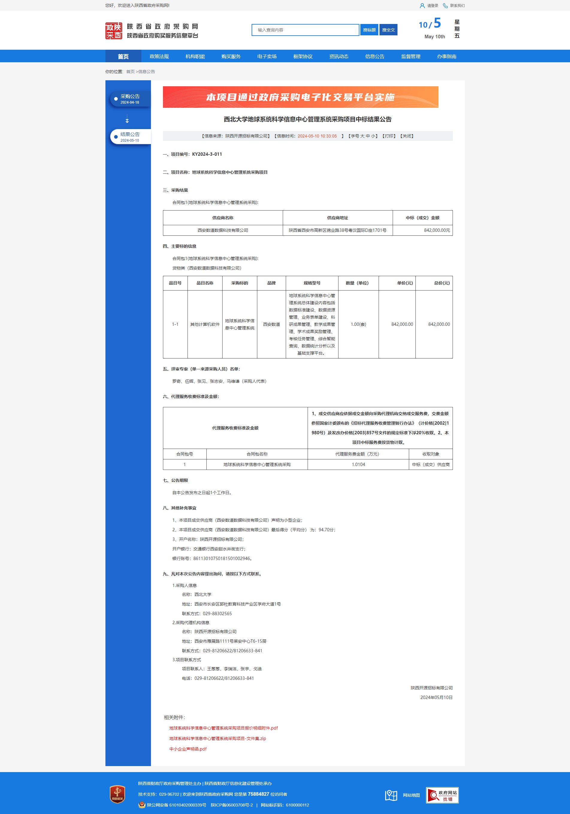 欧冠官方网站地球系统科学信息中心管理系统采购项目中标结果公告