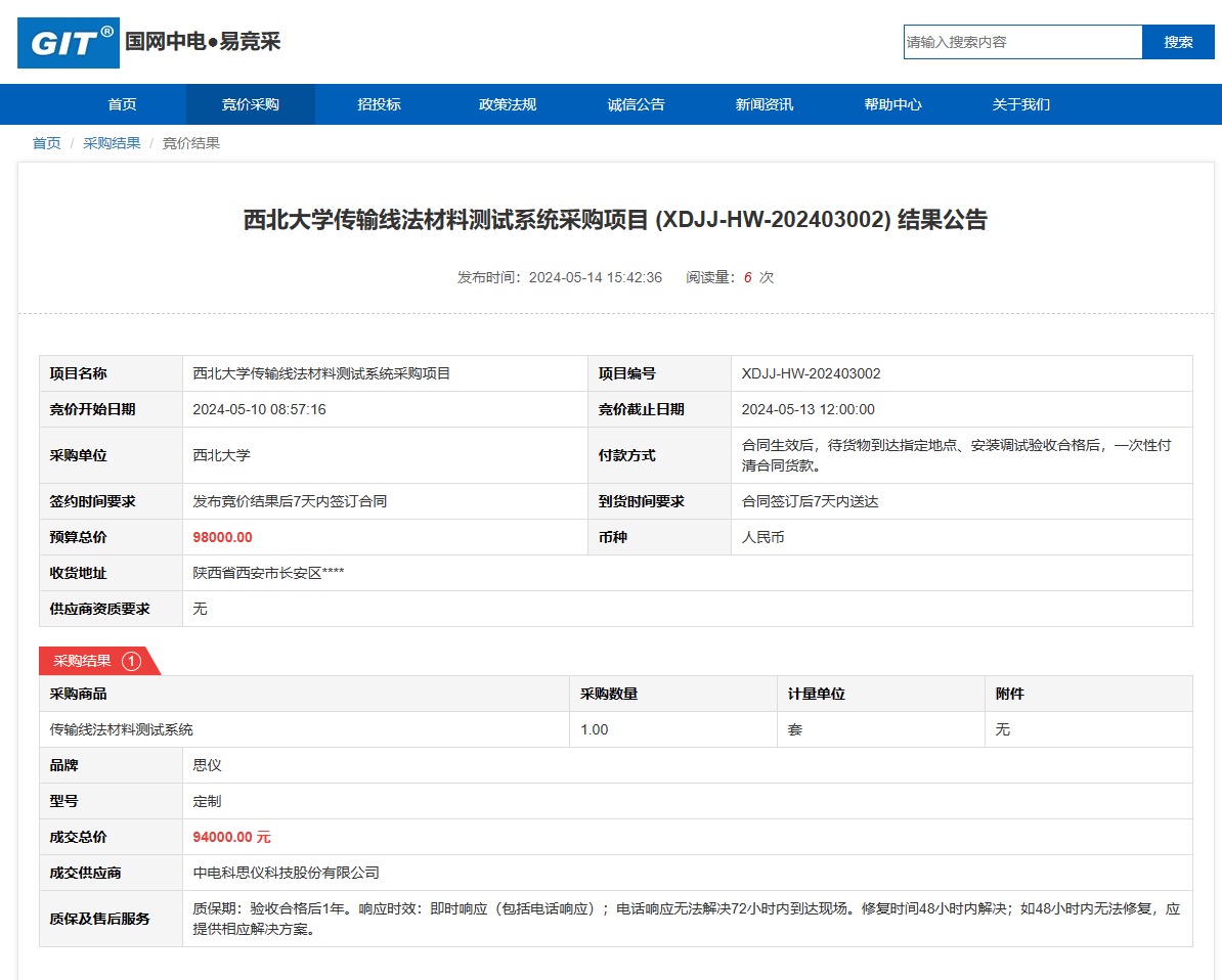 欧冠官方网站传输线法材料测试系统采购项目 (XDJJ-HW-202403002) 竞价结果公告 作者: 编辑: 时间:2024-05-14 原公告链接:https://www.ejingcai.com.cn/site/bidding/detail/10184