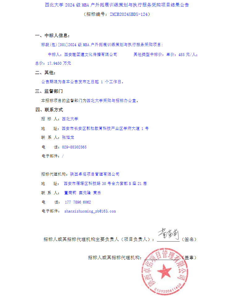 欧冠官方网站2024级MBA户外拓展训练策划与执行服务采购项目结果公告