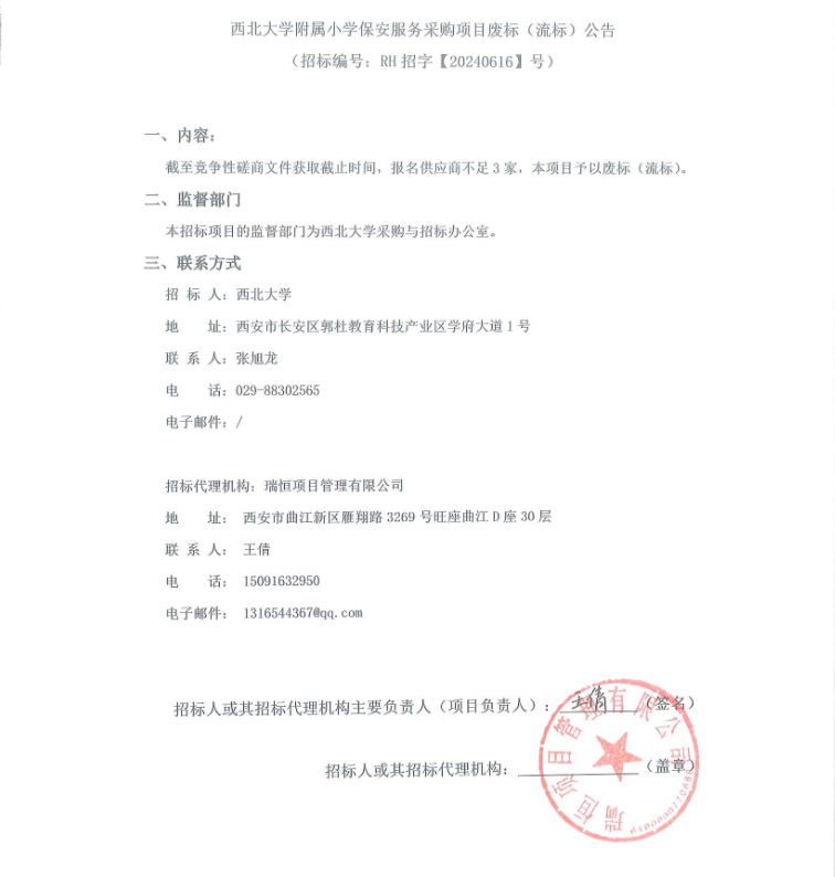 欧冠官方网站附属小学保安服务采购项目废标(流标)公告