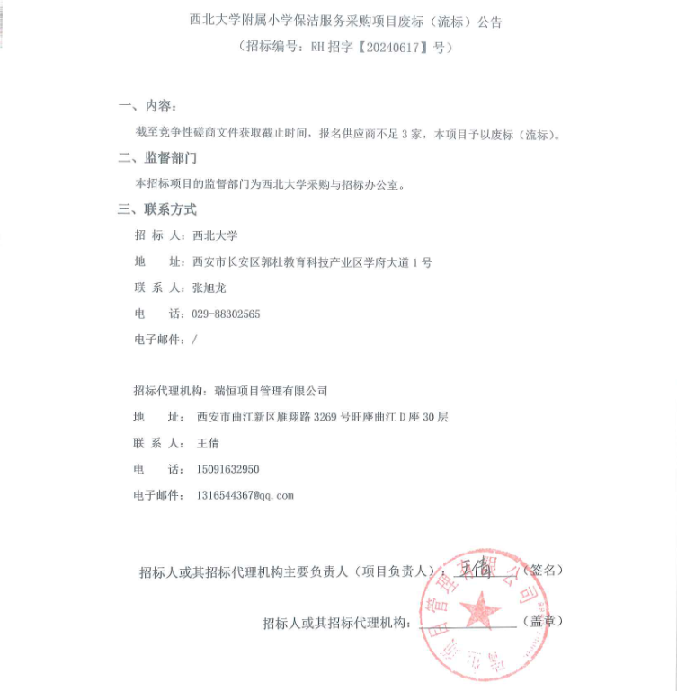 欧冠官方网站附属小学保洁服务采购项目废标(流标)公告