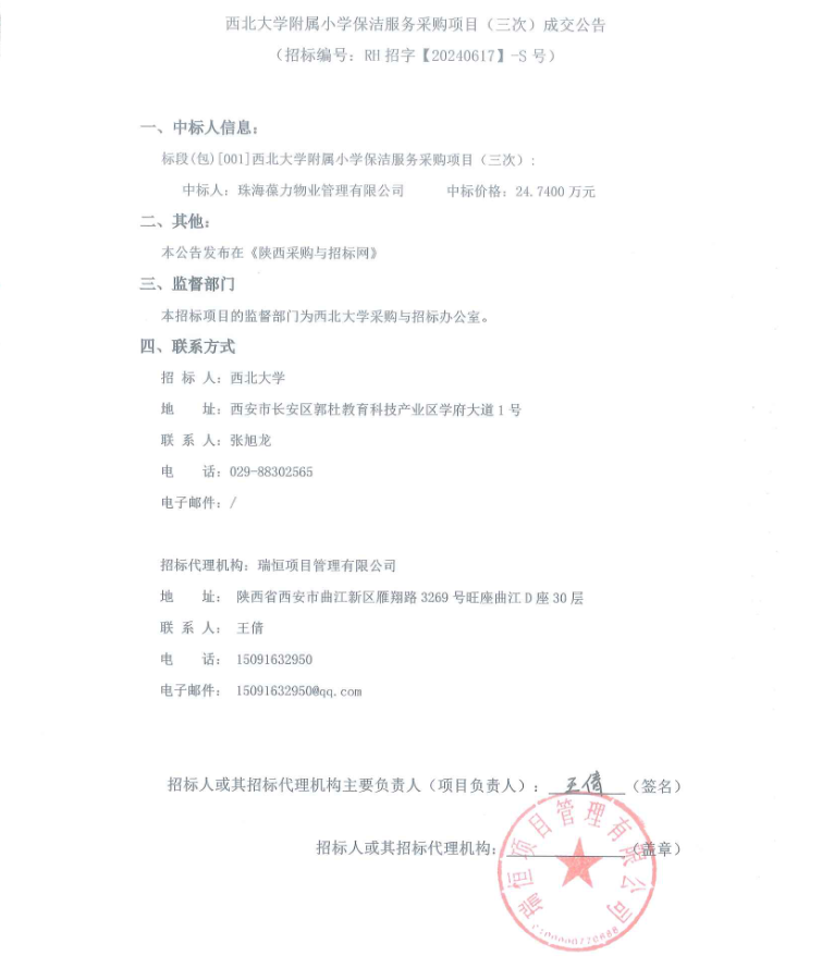 欧冠官方网站附属小学保洁服务采购项目(三次)成交公告